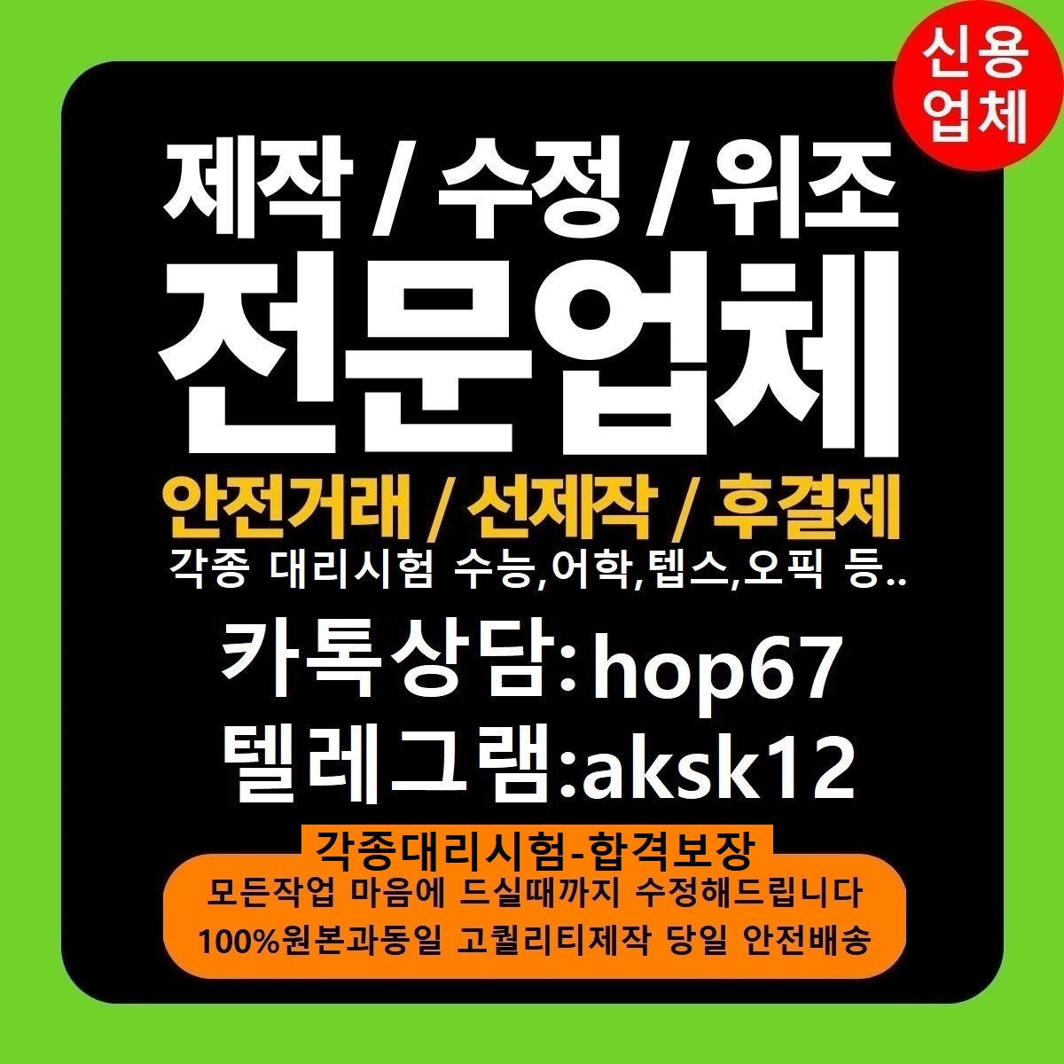 수정업체↗제작업체↗위조업체↗각종대리시험